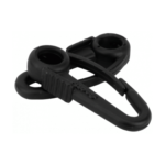 Karbinhake Scotty tillverkad i svart nylon användbar för olika ändamål.